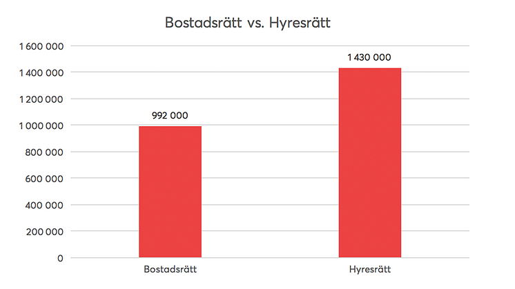 Det finns nästan 26 000 bostadsrättsföreningar i Sverige idag, som innehar drygt 992 000 lägenheter. Hyresrätt är fortfarande den vanligaste upplåtelseformen med ca 1 430 00 lägenheter, även om det skiljer sig mellan kommunerna i landet. Det är 30 kommuner som har fler bostadsrätter än hyresrätter och hälften av dem ligger i Stockholms län.