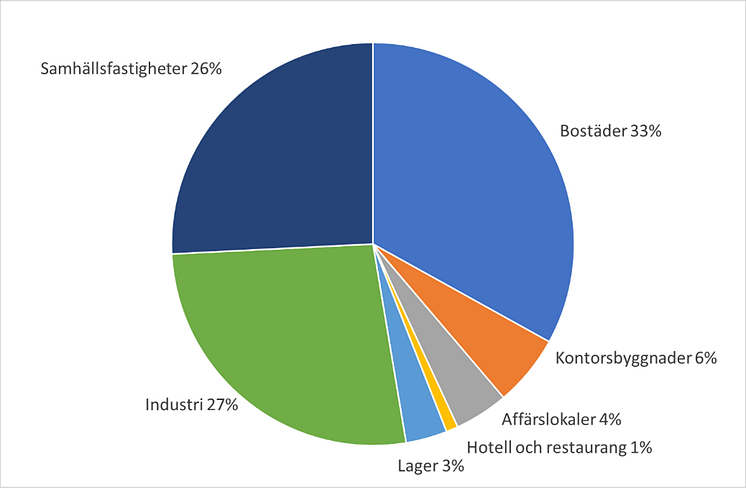 Byggnader: Bostäder utgörs av flerbostadshus och gruppbyggda småhus (inkl. äldrebostäder). Övriga byggnader utgörs av industrier, lager, kontorsbyggnader, affärslokaler, hotell och restaurang samt samhällsfastigheter. Byggnation som klassificeras som anläggning exkluderas från beräkningarna.