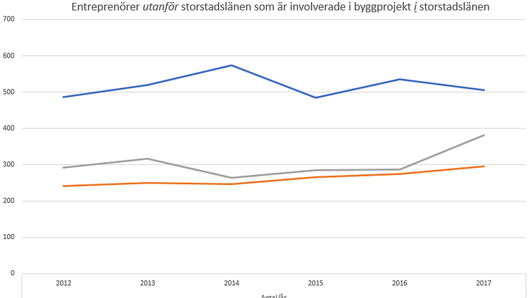 Så här många entreprenörer utanför storstadslänen utför projekt i storstadslänen, unik statistik 2012-2017