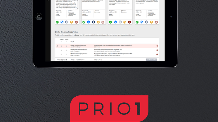 PRIO1 är en produkt från Byggfakta, som vet vad som byggts, byggs och planeras att byggas. PRIO1 är framtagen med den mindre hantverkaren i fokus. Vi vill hjälpa er att komma i kontakt med rätt person vid rätt tillfälle och därigenom göra fler och lönsamma affärer.