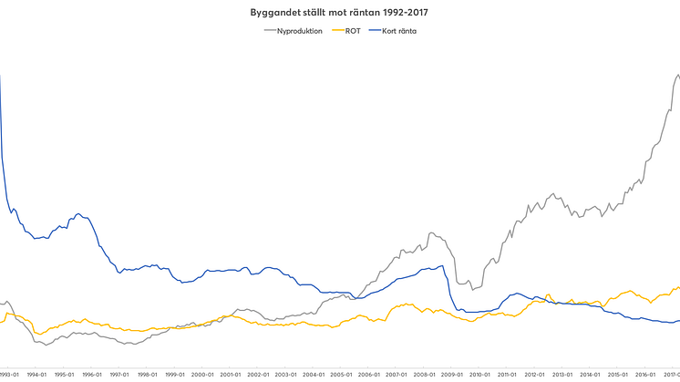 I den här rapporten kollar vi närmare på relationen mellan byggandet och ränteläget. Byggfaktas databas sträcker sig ända bak till början av 90-talet, vi har här separerat nyproduktions- och ROT-marknaden för byggande av samtliga lokaler och husbyggnationer.