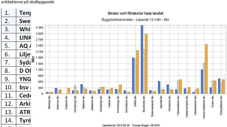 • Rapport om skolbyggandet i Sverige med ranking av de mest anlitade arkitekterna, byggstatistik m.m.
